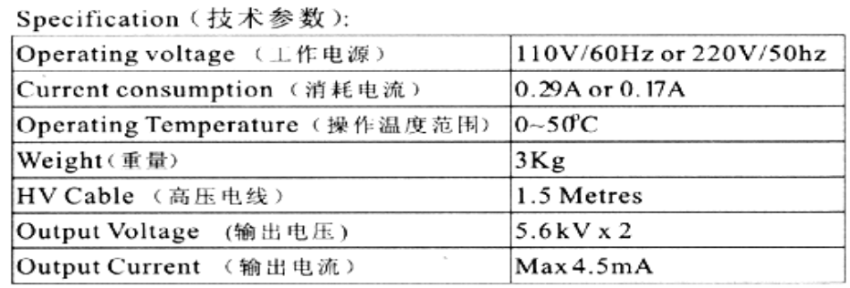 靜電消除器技術(shù)參數(shù):