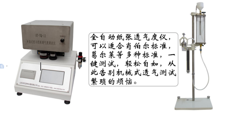 透氣度的測(cè)定儀器較多,如肖伯爾(Schopper)型、葛爾萊(Gurley)型、本特生(Benda型、遜迪爾(Siudall)型、溫克列爾-卡斯頓斯(Winkler-Kars tens)型、達(dá)倫斯(Dalenas)型等。目前我國(guó)標(biāo)準(zhǔn)GB/T 458-1989規(guī)定采用的儀器是肖伯爾透氣度儀,GB/T 2679.13-1996規(guī)定中等范圍的透氣度采用本特生型。