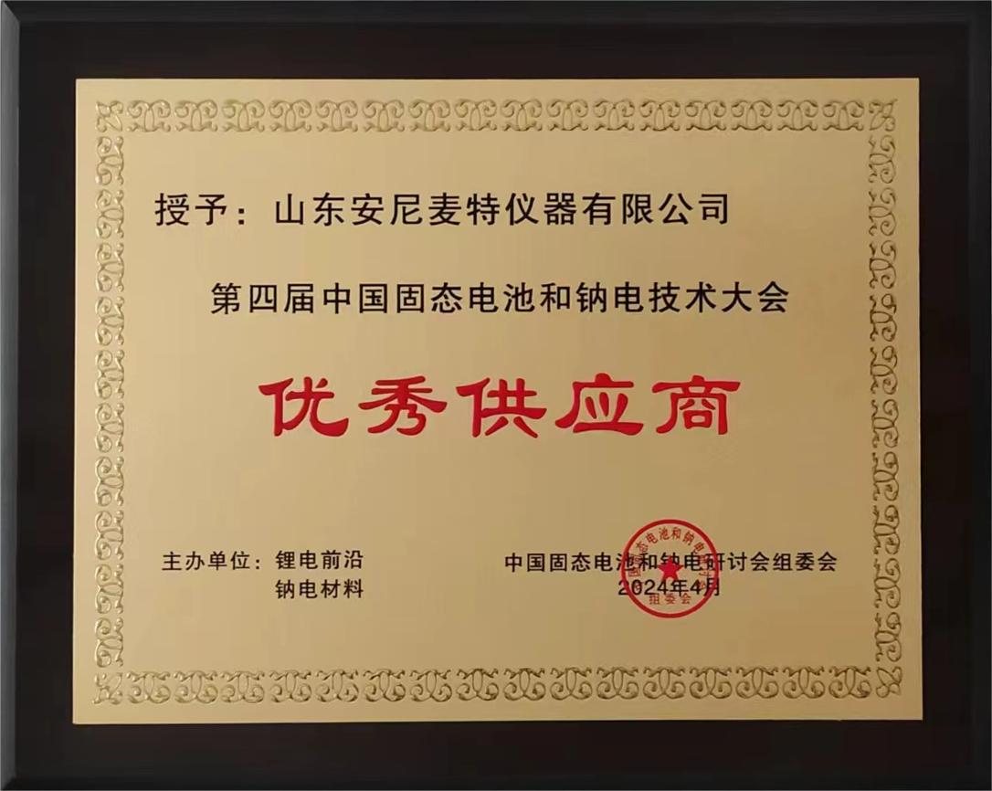 山東安尼麥特儀器有限公司公司被2024年第四屆中國(guó)固態(tài)電池和納電技術(shù)大會(huì)組委會(huì)授予 優(yōu)秀供應(yīng)商